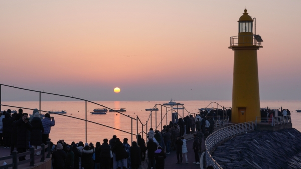[Ytv영상스토리] 일몰과 일출을 한 곳에서 볼 수 있는 서해안의 대표적인 해넘이·해돋이 명소인 서천군 서면 마량진항에 2일간 3만여명의 많은 인파가 몰리며 북새통을 이뤘다.