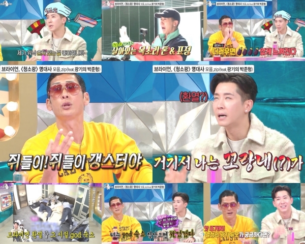 브라이언은 MC 장도연이 “’청소광’이 인.급.동.에 오르게 된 가장 큰 이유는 브라이언 표 명대사잖아요”고 언급하자, “저는 명대사라고 생각도 안 했어요”며 ‘청소광’ 명대사가 나오게 된 배경을 공개했다.