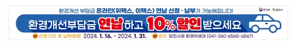 시 관계자는 환경개선부담금 연납이 유용한 절세 수단이므로 시민들이 많은 참여를 당부했다.