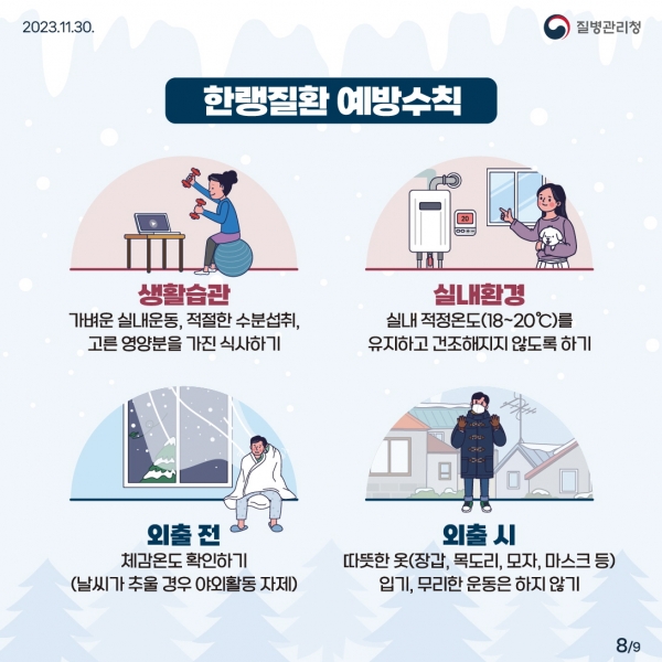 추운 날씨에는 가급적 야외활동을 하지 않는 것도 좋은 방안이다.