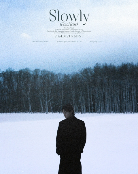 앞서 공개된 티징 콘텐츠와 달리 쓸쓸하면서도 짙은 겨울 감성은 ‘Slowly’만의 분위기를 연상하게 만든다.