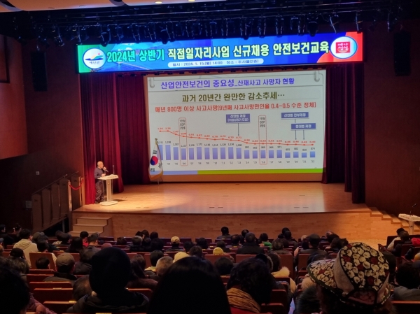 [Ytv영상스토리] 예산군은 군청 추사홀에서 예산군 직접일자리 사업 근로자와 담당자 등 250여명을 대상으로 산업안전 및 중대재해를 예방하고 안전의식을 고취하기 위한 ‘2024년 상반기 직접일자리사업 안전보건 교육’을 실시했다고 17일 밝혔다.