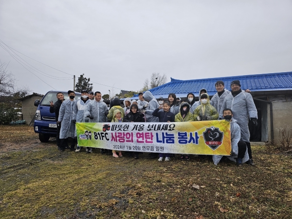 겨울비가 내리던 지난 20일 논산시 축구동호회인 81FC 회원과 가족 30여명은 자신들이 기부한 연탄 2천장 중 1천장을 연무읍 저소득층 2가구에 직접 배달해 줬다.