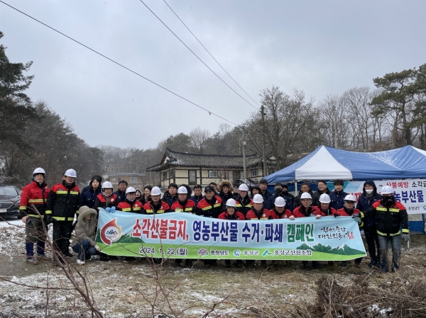 이날 캠페인에는 홍성군 산림녹지과와 충남도, 홍성군산림조합, 홍성군농업기술센터, 산림재해 스피드봉사대 등 40여명이 참석해 산림인접 농지에서 영농부산물을 수거·파쇄하고 영농부산물 소각행위 금지 홍보 캠페인과 드론 산불 예방 공중계도 함께 진행했다.