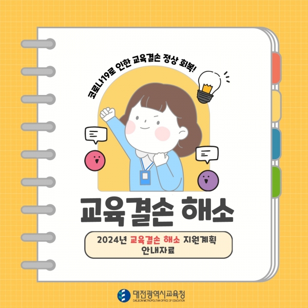 대전교육청은 엔데믹 상황 속 변화된 국민정서 및 체감도 등을 고려해 코로나로 인한 교육결손이 있는 학생들을 지원하고자 약 25억원의 예산을 마련해 ‘2024년 교육결손 해소 지원’을 계획했으며 세부 추진 내용은 다음과 같다.