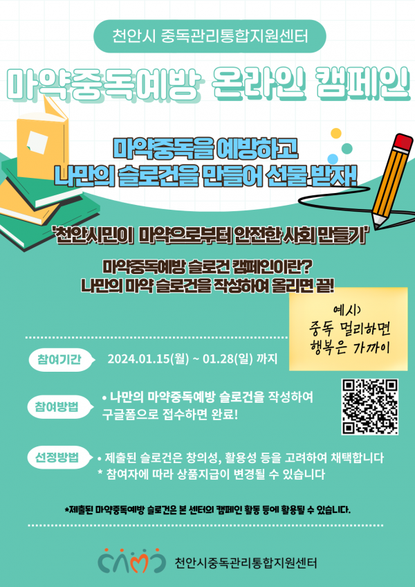 천안시, 마약중독예방 슬로건 만들기 캠페인 실시