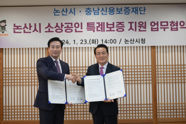 [Ytv영상스토리] 논산시는 지난 23일 고금리와 고물가로 어려움을 겪는 소상공인을 위해 충남 신용보증재단과“소상공인 특례보증 지원 업무협약”을 체결했다고 24일 밝혔다.