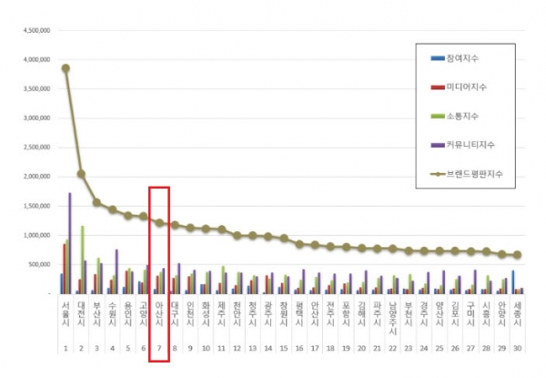아산시는 인구 200만 이상 광역시는 물론 100만 이상 수도권 도시들을 제치고 기록한 상위권 순위에 큰 의미를 부여했다.