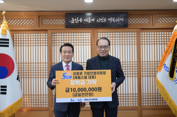 이어서 논산시 관내 철강 제조업체인 세움스틸도 1천만원의 장학금을 기탁했다.