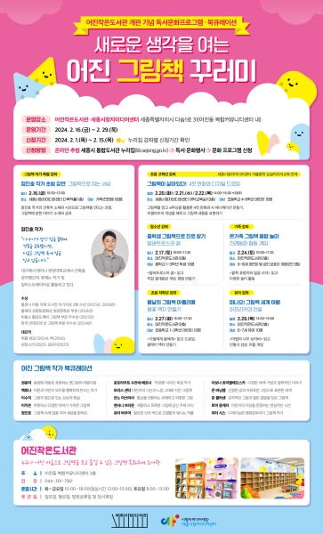 이외에도 ‘중학생 그림책으로 진로 찾기’, ‘온가족 그림책 융합놀이’, ‘봄날의 그림책 아틀리에’, ‘떠나요 그림책 세계 여행’ 등 어린이부터 청소년, 성인까지 참여 가능한 그림책 강좌가 진행된다.