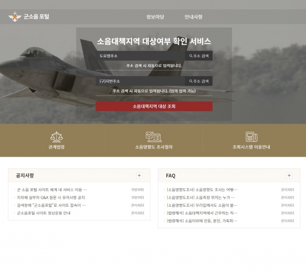 소음대책지역 여부는 군소음 포털에서 확인할 수 있다.
