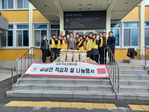 금성면적십자봉사회는 8kg 쌀 50포를 관내 독거노인 등에게 전달했다.