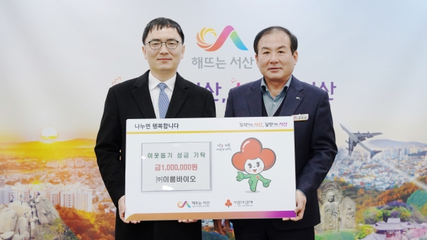 조진형 ㈜이룸바이오 대표는 “서산시를 통해 나눔에 참여할 수 있어 뜻깊게 생각하며 작은 손길이나마 어려운 이웃들에게 희망으로 전해지길 기원한다”고 말했다.