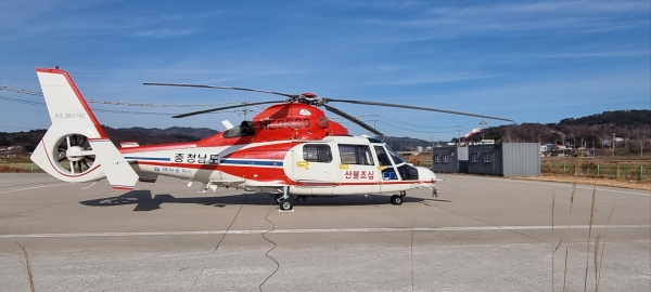 시는 올해 이상기후의 영향과 건조한 기후로 산불 위험성이 대폭 상승할 것이 예상됨에 따라 충청남도 산불진화 임차 헬기 1대를 지난 16일부터 오는 6월 30일까지 예천동 닥터 헬기장에 배치해 산불 발생 시 진화 헬기가 20분 내 도착할 수 있는 체계를 마련했다.