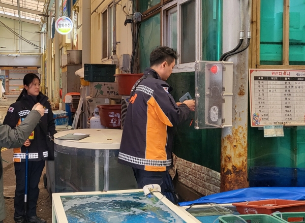 또한, 시장 내 수족관 히터봉 관리 상태 문어발식 콘센트 사용 여부 누전차단기 작동 여부 가스용기 보관 상태 소방 비상통로 확보 여부 규격에 맞는 시설 설치 여부를 세심히 살피는 등 적극적인 점검을 진행했다.
