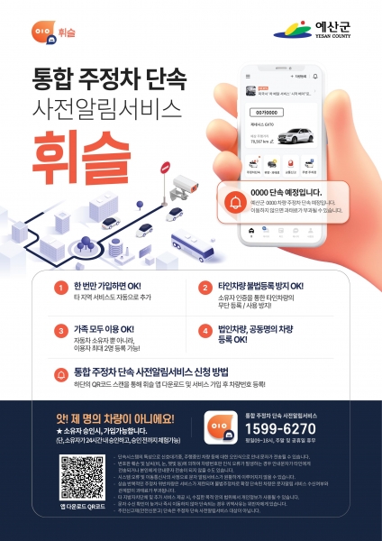 예산군, 불법 주정차 단속 사전 알림서비스 ‘휘슬’ 개시