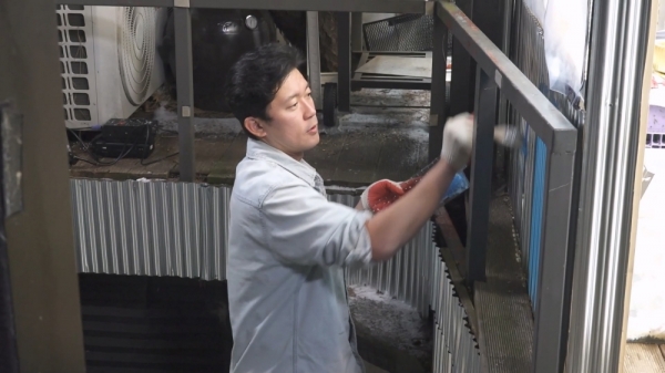 그는 대호하우스 마당 한 켠 벽에 김대호의 초상화를 그리기 시작한다.