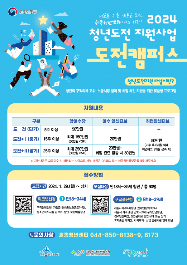 [Ytv영상스토리] 세종시사회서비스원 소속시설 청년센터는 ‘2024년 청년도전지원사업‘도전캠퍼스’’ 참여자 90명을 상시모집 한다.