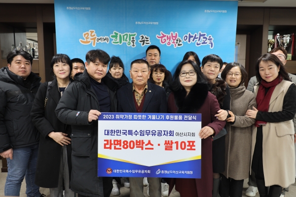 아산교육지원청 박서우 교육장은 “취약 학생에 대한 지속적인 후원과 관심에 감사드리며 꼭 필요한 가정에 따뜻한 마음을 전달하겠다”고 밝혔다.