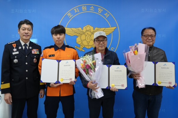 [Ytv영상스토리] 조치원소방서가 지난 7일 심정지로 쓰러진 시민을 살리는데 기여한 시민 김선일 씨와 김용준 씨에게 ‘시민 하트세이버’ 인증서를 수여했다.