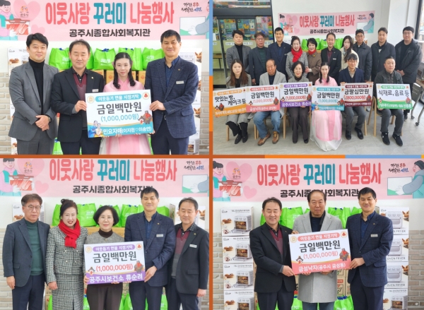 최원철 시장은 “관내 어려운 분들이 나눔을 통해 이웃의 따뜻한 마음을 느끼며 뜻깊은 설 명절을 보내시길 바란다 공주시종합사회복지관이 지역주민을 위한 나눔의 공간으로 활성화되도록 더욱 노력하겠다”고 말했다.