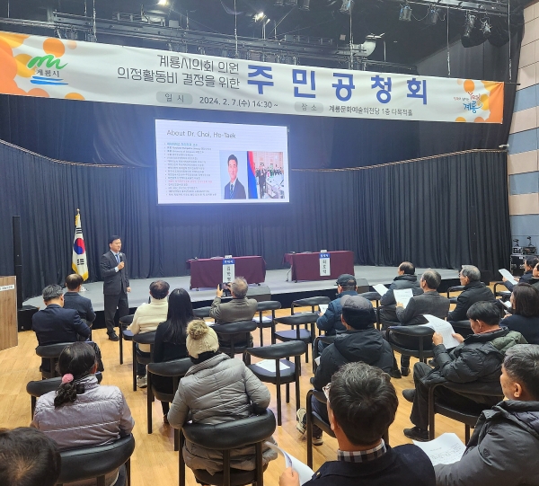[Ytv영상스토리] 계룡시는 지난 7일 계룡문화예술의전당 다목적홀에서 계룡시의회 의원 의정 활동비 인상을 위한 주민공청회를 열었다고 밝혔다.