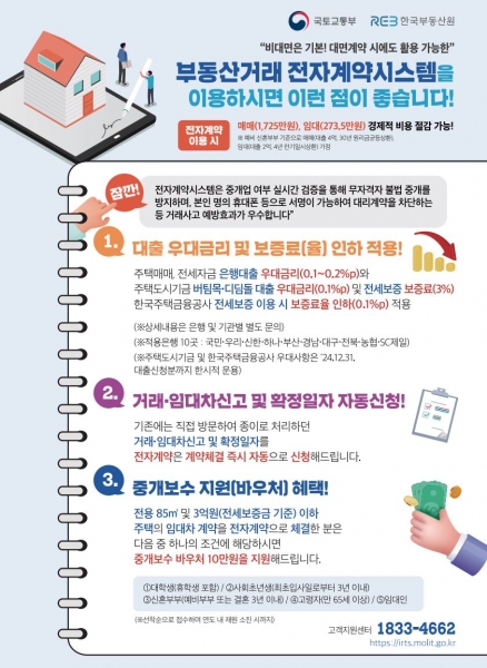 또한 전자계약은 사기 계약 및 이중계약 등 무자격·무등록자의 불법 중개행위를 차단할 수 있어 부동산 거래 질서를 투명하게 만드는 데 큰 도움이 될 뿐만 아니라, 공인중개사와 거래당사자 신분을 철저하게 확인할 수 있어 부동산 중개사고를 예방할 수 있다.