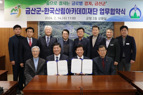 [Ytv영상스토리] 금산군은 지난 14일 군청 상황실에서 한국산림아카데미재단과 상생발전 도모 업무협약을 체결했다.