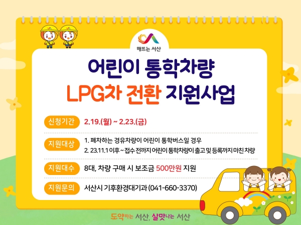 서산시, 미세먼지 저감 위해 어린이 통학차량 LPG 전환 지원