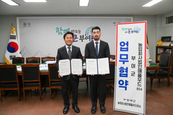 이번 협약은 대도시의 부여 농식품 직거래 확산을 위해 군과 애플우드804 상호 간 유기적인 민관거버넌스를 구축해 지역 농산물의 안정적인 공급과 고품질 서비스를 제공하기 위한 것으로 향후 긴밀한 협력을 약속했다.
