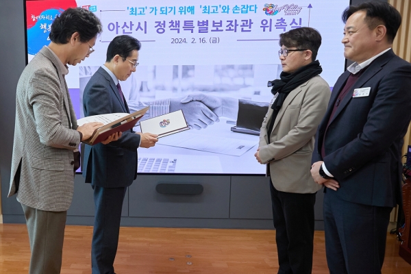 한편 아산시는 ‘대한민국 최고 도시’가 되겠다는 포부로 각 분야의 ‘최고’ 전문가를 정책특별보좌관으로 위촉해 시정 전 분야에 걸쳐 활발한 활동을 보여주고 있다.