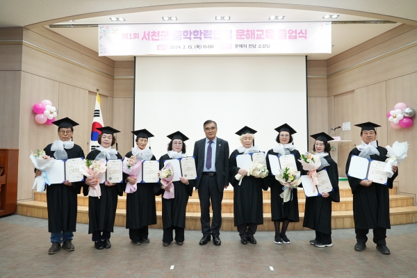 이날 김기웅 군수와 서천군의회 김경제 의장, 서천교육지원청 김병관 교육장이 참석해 그동안의 수고와 노력을 치하하고 졸업하기까지 함께한 문해 교사들에도 힘찬 박수로 훈훈한 축하의 시간을 가졌다.