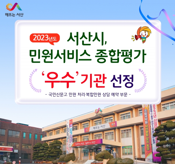 서산시, 2023년도 민원서비스 종합평가 ‘우수’기관 선정
