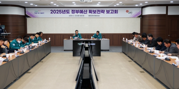 군은 20일 군청 중회의실에서 가세로 군수와 공직자 등 40여명이 참석한 가운데 ‘2025년도 정부예산 확보전략 보고회’를 갖고 주요 전략사업 및 현안사업 추진을 위한 예산 확보방안을 논의했다고 밝혔다.