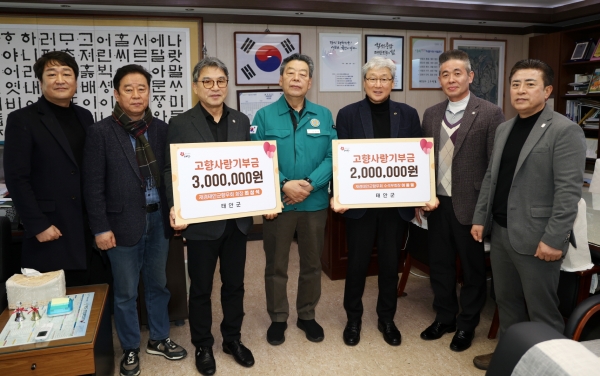 지난해 2월에도 고향사랑기부금 500만원을 기부한 바 있는 최상석 회장이 300만원을 기부했으며 이종열 수석부회장도 200만원을 기부해 이날 총 500만원이 태안군에 전해졌다.