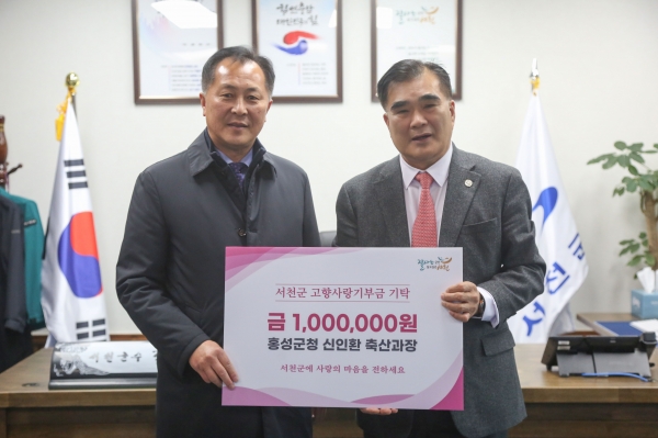 [Ytv영상스토리] 신인환 홍성군청 축산과장이 지난 22일 서천군에 고향사랑기부금 100만원을 기탁해 남다른 애향심을 드러냈다.