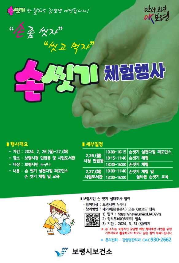 보령시, 감염병 예방의 첫걸음 ‘손 씻기’체험행사 개최