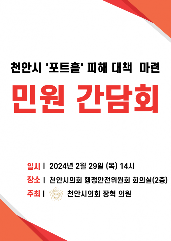 천안시의회 장혁 의원천안시 포트홀 피해 대책 마련 간담회 개최