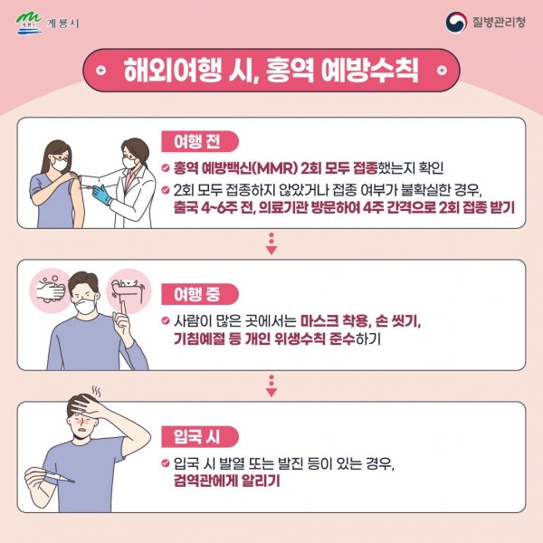 보건소 관계자는 “최근 해외 국가에서 홍역이 유행하고 있는 만큼 해외여행 시 가속접종을 해주시기 바란다”고 말했다.