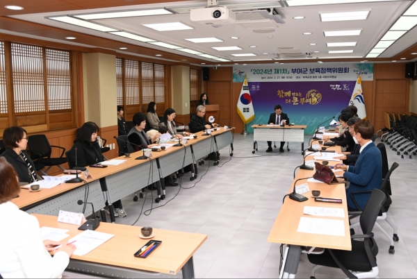 [Ytv영상스토리] 부여군은 지난 27일 12명의 보육정책위원이 참석한 가운데 군청 서동브리핑실에서 2024년 제1차 부여군 보육정책위원회를 개최했다.
