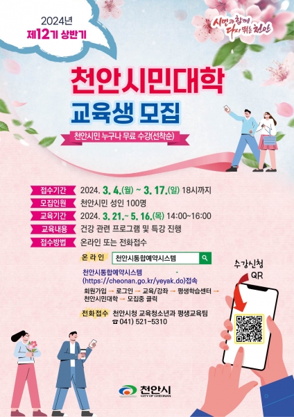 평생학습 기회의 장 ‘천안시민대학’ 교육생 모집