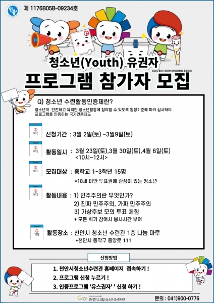 천안시청소년수련관, ‘청소년 유권자’ 프로그램 참가자 모집