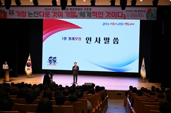 이날 월례모임은 개회, 시민·직원 표창 수여, 2024 논산시 농식품 해외박람회 영상 시청, 김지연씨 축하공연, 백성현 논산시장의 축하 및 감사 인사의 순서로 진행됐다.