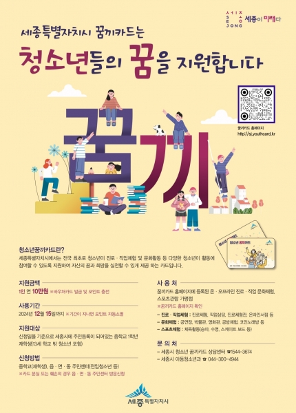 ‘꿈끼카드’ 사업은 세종시에서 시행하는 청소년 활동 지원사업으로 각자의 재능을 계발하고 꿈과 희망을 실현할 수 있는 청소년 특화사업이다.
