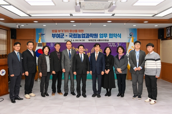 [Ytv영상스토리] 부여군은 지난 6일 국립농업과학원 농업생물부와 군청 서동브리핑실에서 밤꿀의 기능성 활용 및 부가가치 향상을 위한 업무협약을 체결했다고 밝혔다.