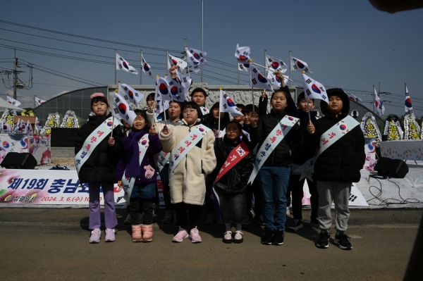 먼저 충남최초3.1운동선양회 회원과 주민, 박정현 부여군수, 도의원, 군의원, 기관·사회 단체장 등이 참여한 만세 운동 재현 행렬이 충화면 행정복지센터에서부터 독립운동 의거 기념비 광장까지 이어졌다.
