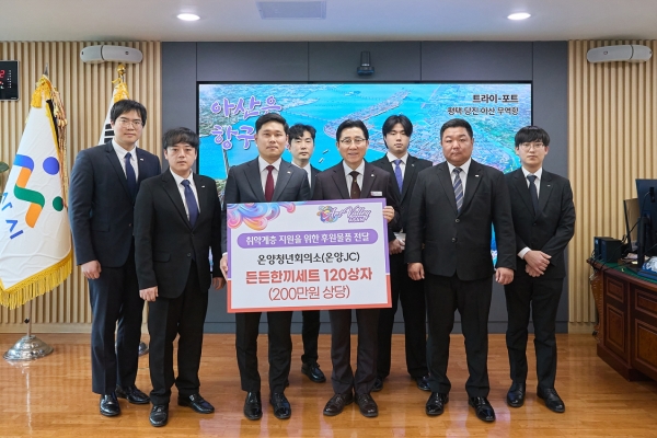 한편 온양청년회의소는 지난달 22일 아산시에 관내 취약계층 지원을 위한 후원 물품을 전달했다.