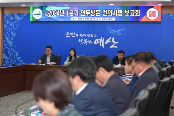 [Ytv영상스토리] 예산군은 지난 7일 군청 중회의실에서 최재구 군수를 비롯해 부군수, 국장, 부서장 30여명이 참석한 가운데 “2024년 1분기 연두방문 건의사항 보고회”를 개최했다고 밝혔다.