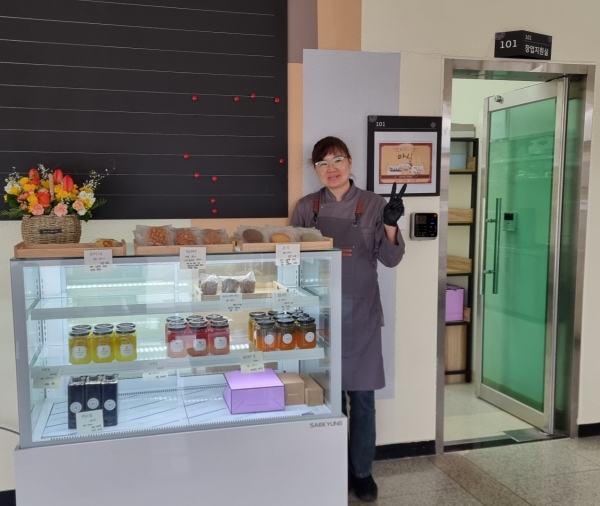 여성문화회관 한쪽에 자리 잡은 빵 판매대에 오가는 사람들의 시선이 닿으며 관심을 끌었다.