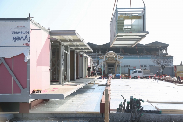 군에 따르면 4월 넷째 주 임시상설시장 개장을 목표로 지난 9일 일반동 점포가 입점 예정인 모듈러 구조 먼저 현장 설치를 시작하고 3월 중순 막구조물도 현장 설치를 진행할 계획이라고 밝혔다.